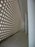 真っ白い巨大な要塞「沖縄県立博物館・美術館」。ぽこぽこ空いた壁は沖縄らしい。