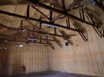 右写真は古い倉庫を利用した作品。天井にはいくつもの羽根が。