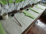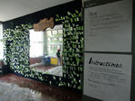 緑色の紙に好きな言葉を書いて白い手袋に入れるという参加型のアート作品。