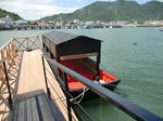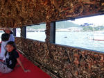 海辺では一風変わった船が。乗り込むと中は金ピカピカ。