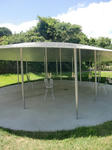 写真左半分は妹島和世さんが手がけた家や休憩所。ここにもラビットチェアが。