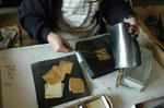 和紙に1枚1枚はさんで、細心の注意をはらって作業されてました。