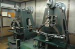 写真左は1000分の1mmの厚さの金。これを束にして機械で1万分の1mmの厚さに伸ばします。
