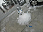 初めての蕎麦打ち体験。粋なエプロンをつけて、せっせと蕎麦づくり。