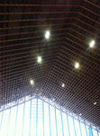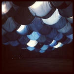 下左:全国の藍染作家さんが染めた布をつなげあわせた大型アート。