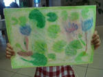 そしてこんな絵が完成しました。作品名は「葉っぱのお庭」だそうです。