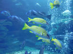 下の写真真ん中はメインの大水槽。エイやサメやウミガメが気持ちよく泳いでました。