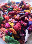 カラフルな紙の原料を使って紙を漉き、染色し、自由な作品をつくりました。