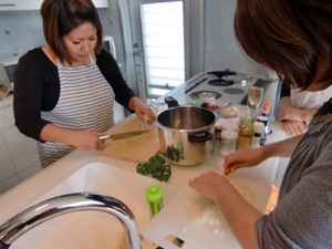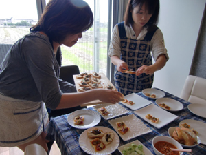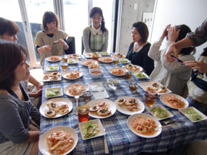 出来上がった料理をみんなで盛り付けして、手を合わせて「ボナペティート!」。