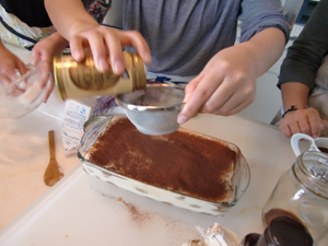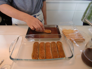 ティラミスはクッキーみたいなものにエスプレッソを浸していきます。