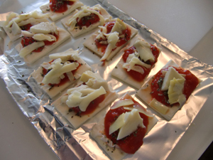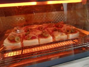 アンティパストの2品はパイとバゲットに具材をのせてこんがり焼き上げます。