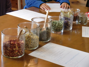 あとは香りをかいだり効能によってオリジナルハーブティーをブレンドしていきます。