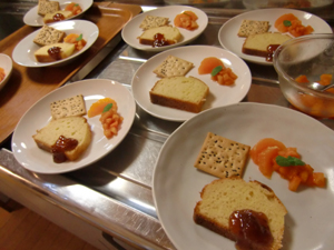 教室後は焦がしバターのパウンドケーキと柿のコンフォート、ゴマクラッカーを食べながら、