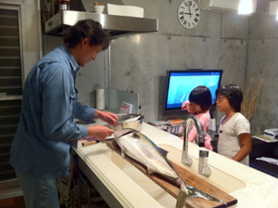 その日の夜、鉄巨会の皆さんでサワラをタタキと塩焼きで頂ました。