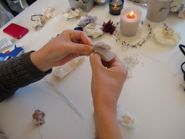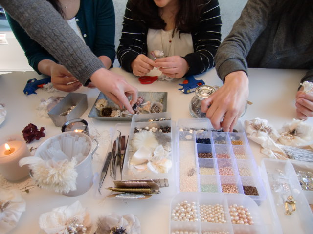 2月の2回目のワークショップはsonoさんによるコサージュ&ヘアピンづくり。