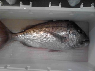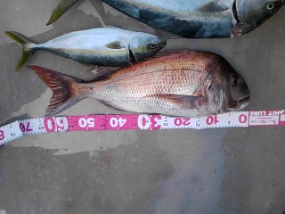 終盤にやっとフッキングできあげたのは自己記録更新「マダイ」65cm