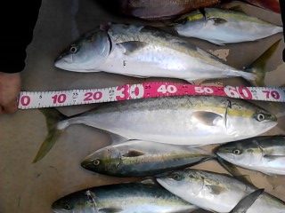 あとはパラパラと「ハマチ」を上げ結果、メジロ2本、ハマチ7本、