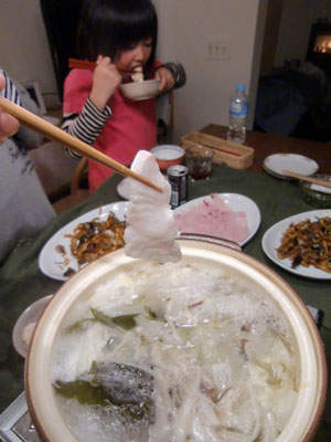 。この日の夜はA邸へお呼ばれでしたのでタイシャブをポン酢で頂きました。