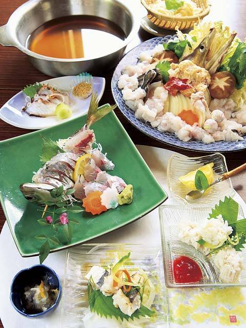 鱧の突き出し、煮魚、トツカアジのお刺身、鱧のフライなど鱧をたっぷり堪能し、幸せなひとときを。