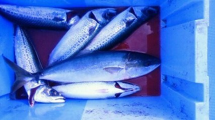 40cmのサバ5匹と50cmのハマチを1匹を釣り上げた。