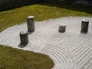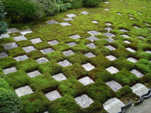 敷石と苔が市松模様に配されて、モダンアートを思わせる美しい日本庭園でした。