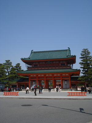 緑と朱色のコントラストが魅力の「平安神宮」へ。