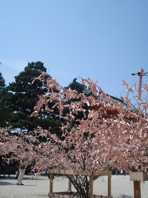 ピンクの桜みたいなのはおみくじ。それにしてもchinaese、めっちゃ多い。