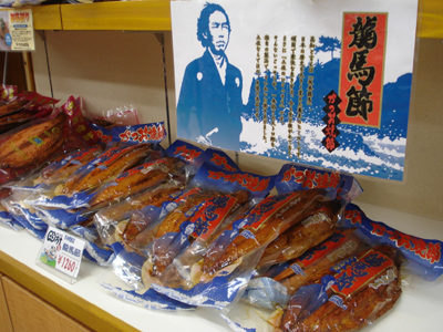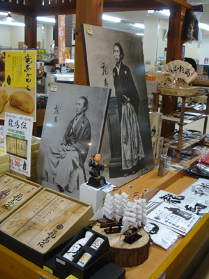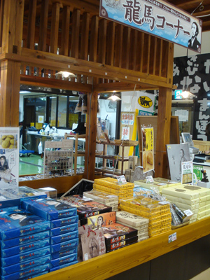 四万十のお土産屋さんにも大々的に坂本龍馬コーナーが。