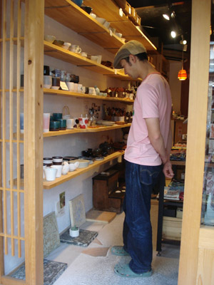 骨董品や木の雑貨、本など、ところ狭しと商品が置かれてました。