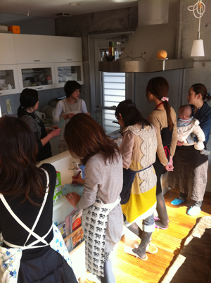 自己紹介→レシピ説明、それからキッチンを囲んでお料理スタート。