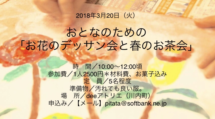 申込み/【メール】pitata@softbank.ne.jp 【FB】fb.me/miki.dejima