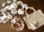 ビシュー、ビーズ、布、ドライフラワーなど、