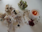 それらを自分流にデザインしてできあがるsonoさんのコサージュたち。