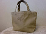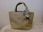 キャンバス地のミニトートバッグにミニコサージュをつけます。