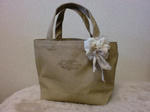 ミニサイズのコサージュをつけてオリジナルバッグを作りましょう。
