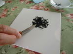次に黒い粉と特殊なオイルを混ぜ合わせて絵の具(?)づくり。混ぜ混ぜ…これは楽しい♪
