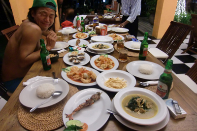 浴びるほどビンタン(ビール)とアラック(焼酎)を注ぎこんでも1人2000円程度の物価の安さ。