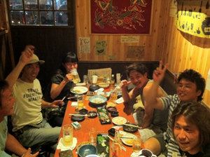手前からyu-chan,katocha,mo-chan,gaido,onoyoshio pro,kazu,ryuji