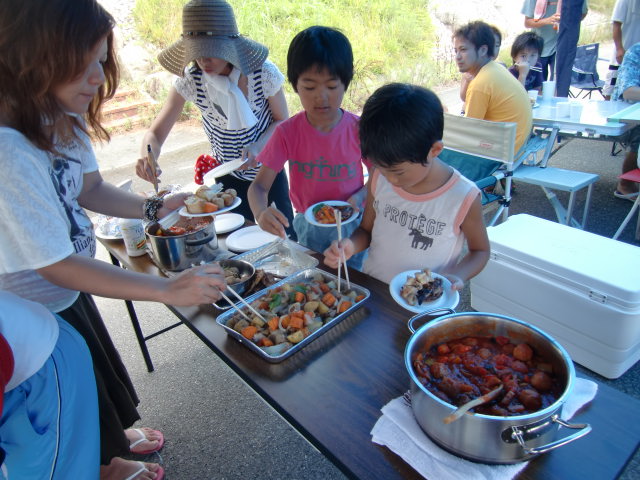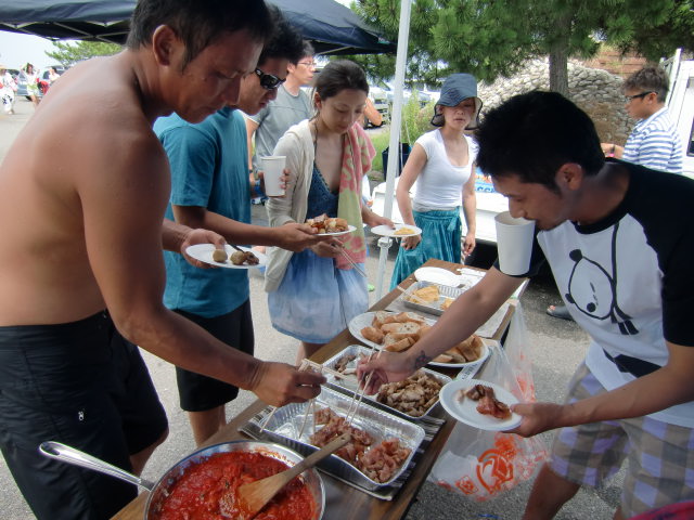 たっぷり2時間、サーフィン教室を楽しんだあとは、第2部アウトドアクッキング。