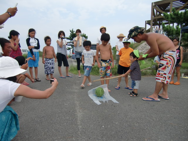 食事のあとは、ちびっ子スイカ割りで大盛りあがり