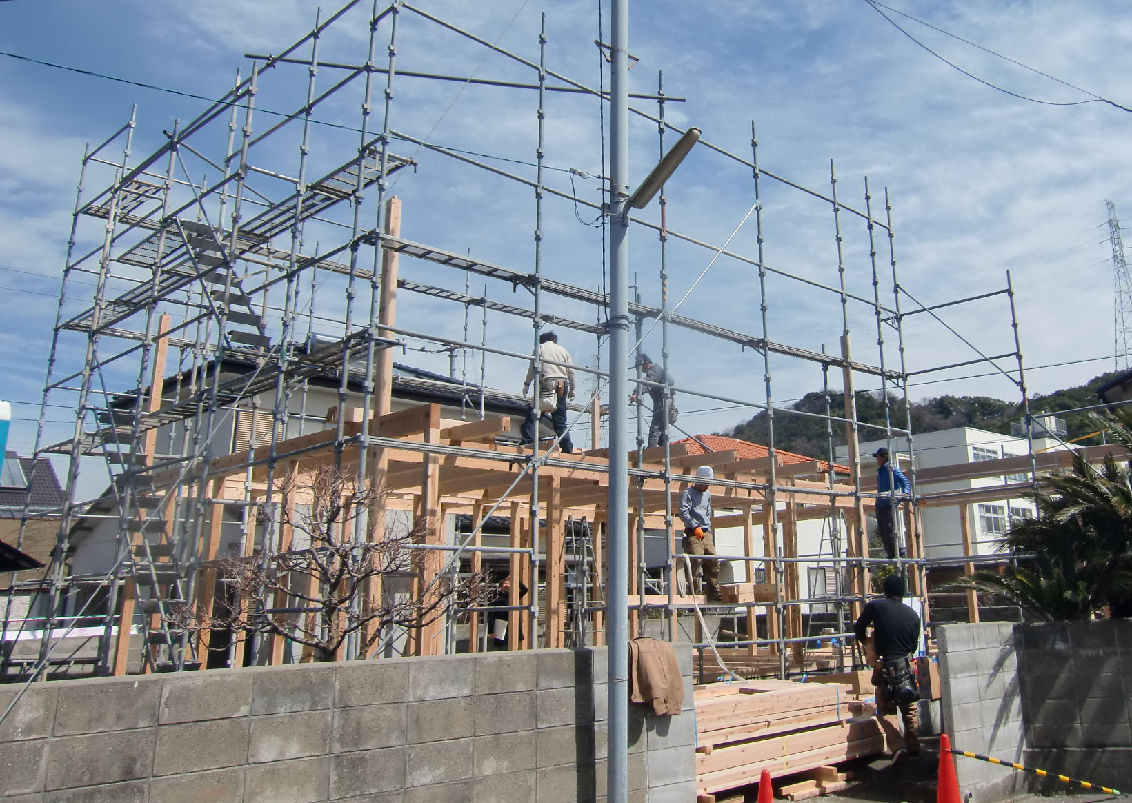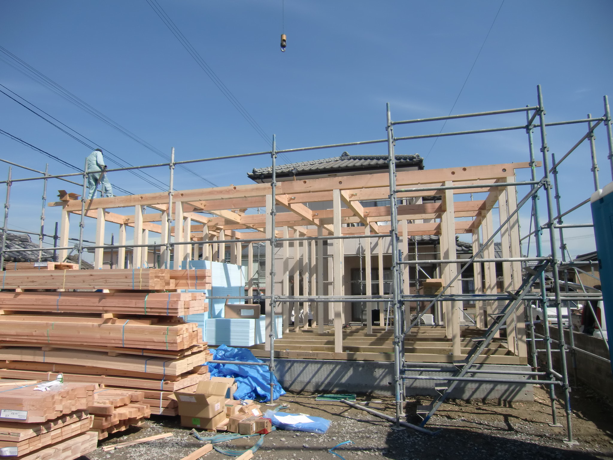 主要な柱や梁、棟木などを組み上げて…おめでとうございます!