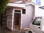 上の写真。入りこんだ旧玄関の前に、すっきりした庇を持つ玄関を増築。