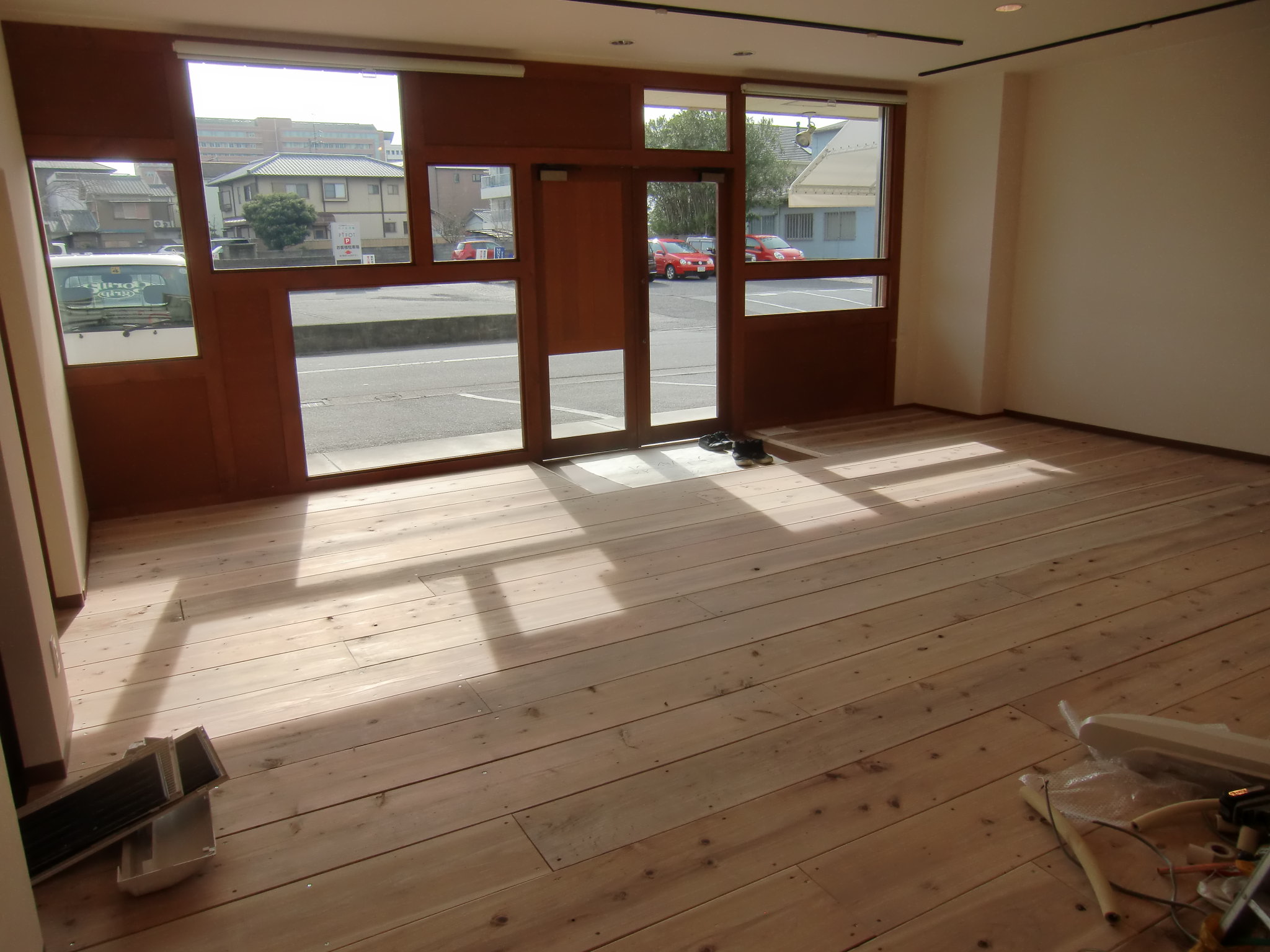 現在改装中で、壁と床、間仕切り工事が終了。あとは棚やカウンターなどをつけて完成です。