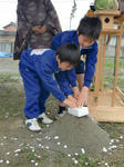 やや緊張な面持ちの小学生2人もお手伝いをして鎮め物を納め、