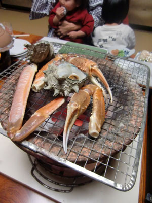 温泉に入ってお待ちかねのカニカニカニのフルコース。右端photo:urara
