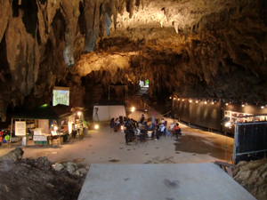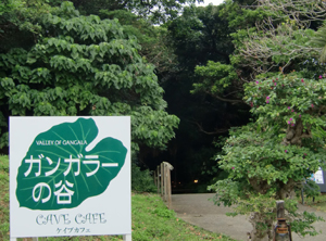 高松空港から那覇へ飛び、レンタカーを借りてまずはガンガラーの谷へ。 洞窟の中にはカフェが!
