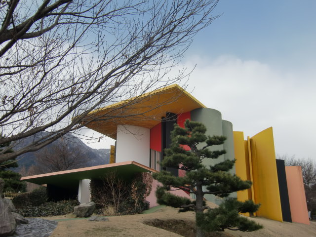 今回のもうひとつの目的は“負ける建築”で有名な建築家隈研吾氏の異彩を放つ建築巡礼。