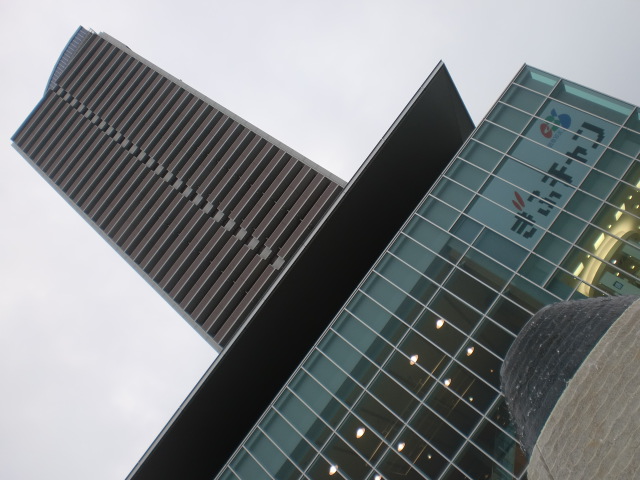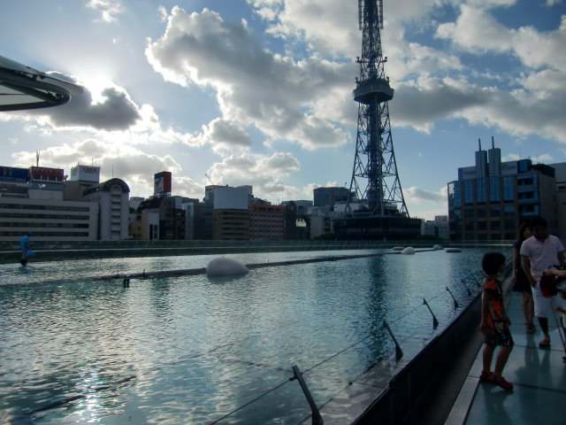 オアシス21。屋上には水が張ってあり、まさに都会のオアシス!奥に見えるのがテレビ塔。