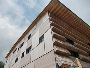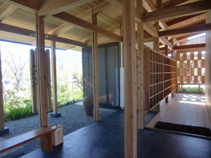 梼原の木材がふんだんに使われ、茅とガラスを組み合わせるなど、手法も斬新。