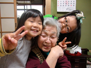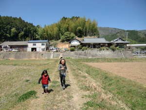 バックに見えるのが祖父母の母屋。今も昔も変わりなく…。